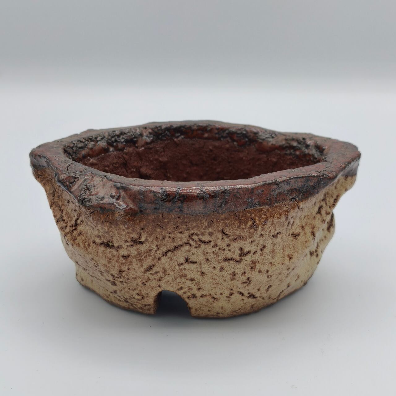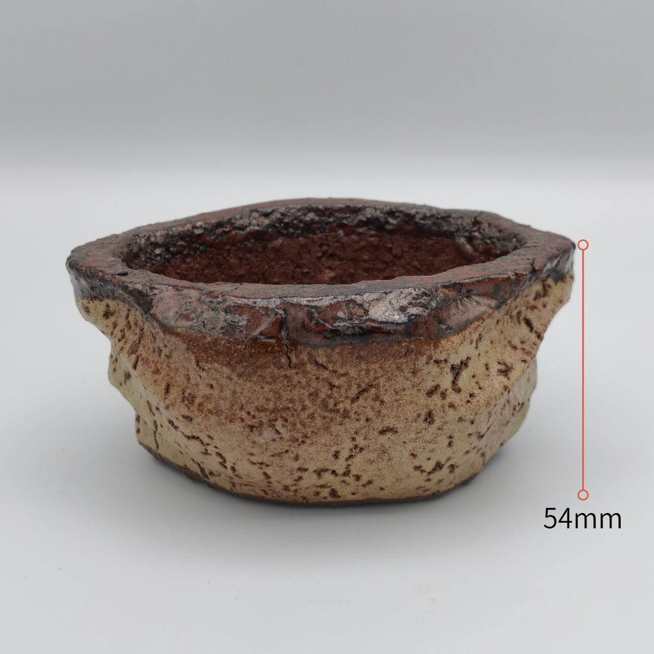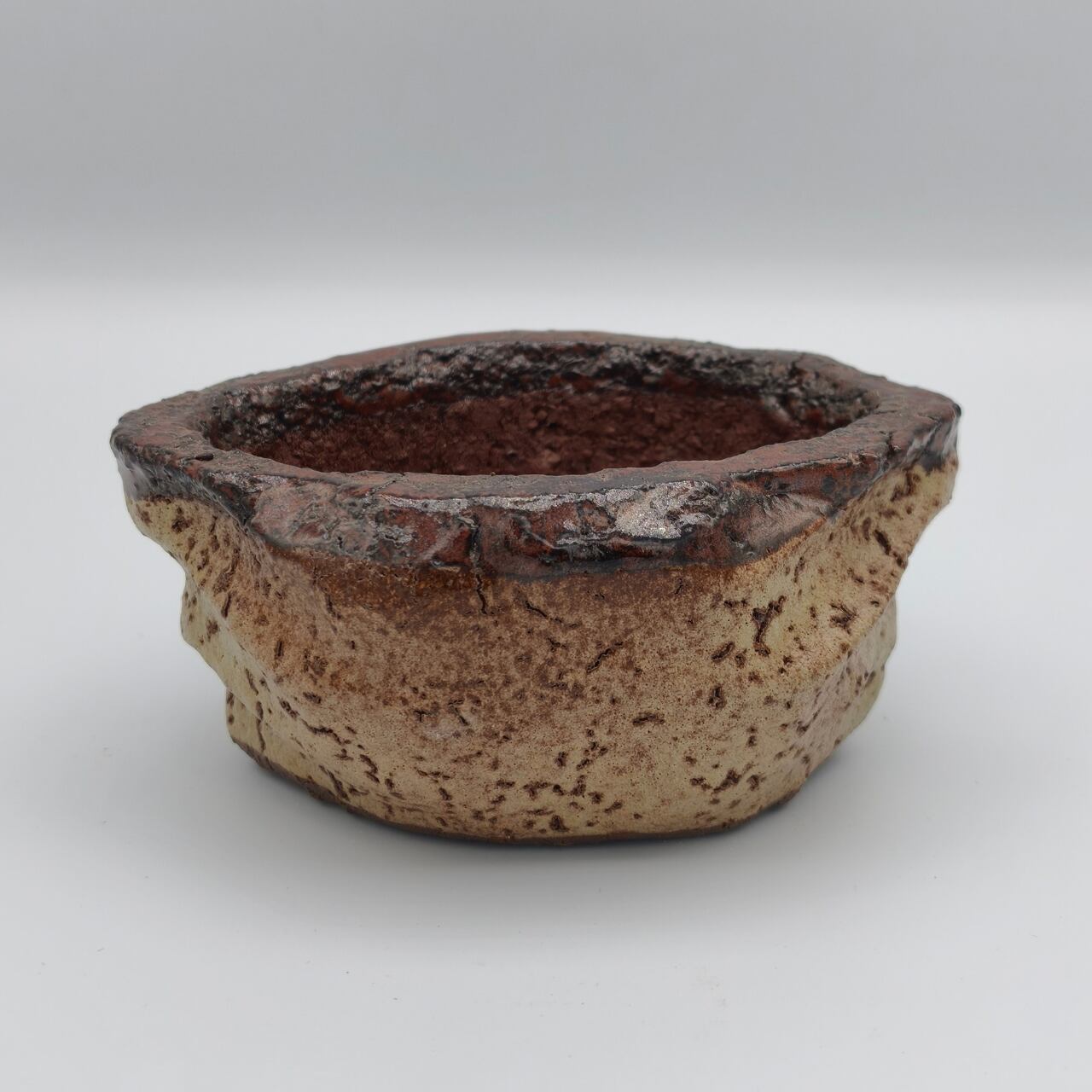 土の質感をそのまま活かし、焼成によって生まれた表情が、内に残る熱を感じさせる一鉢。