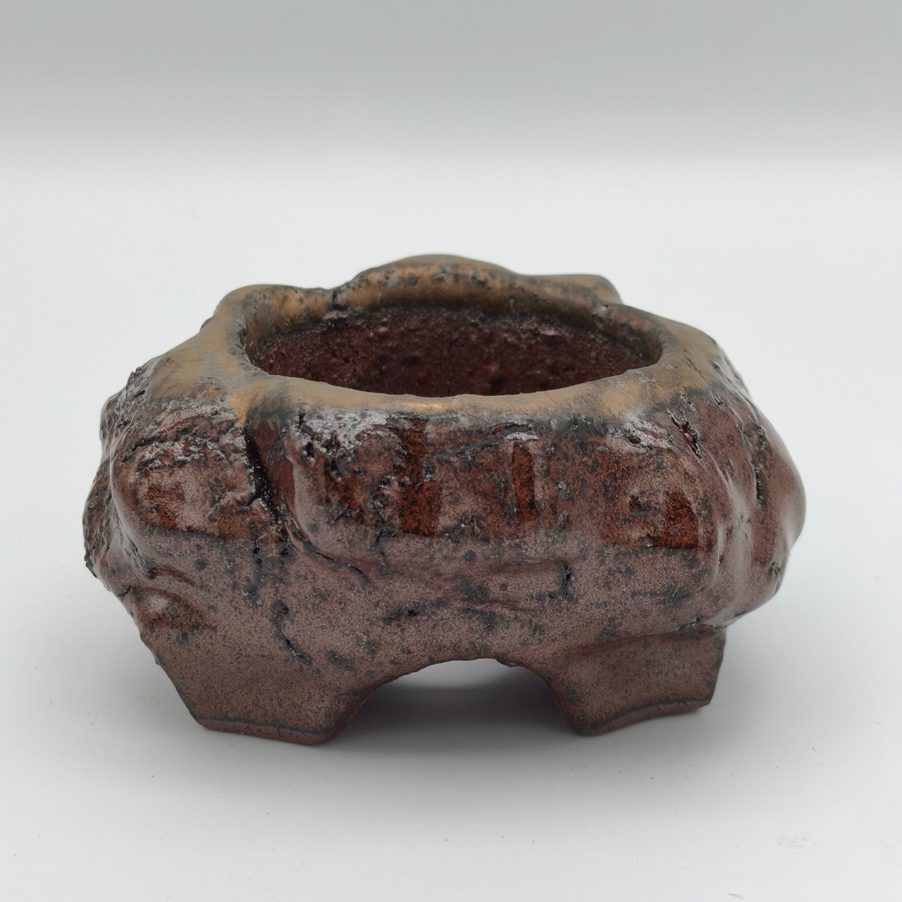 落ち着いた土の色合いの中に、わずかに浮かび上がる明るい表情が、静かな存在感を生み出しています。