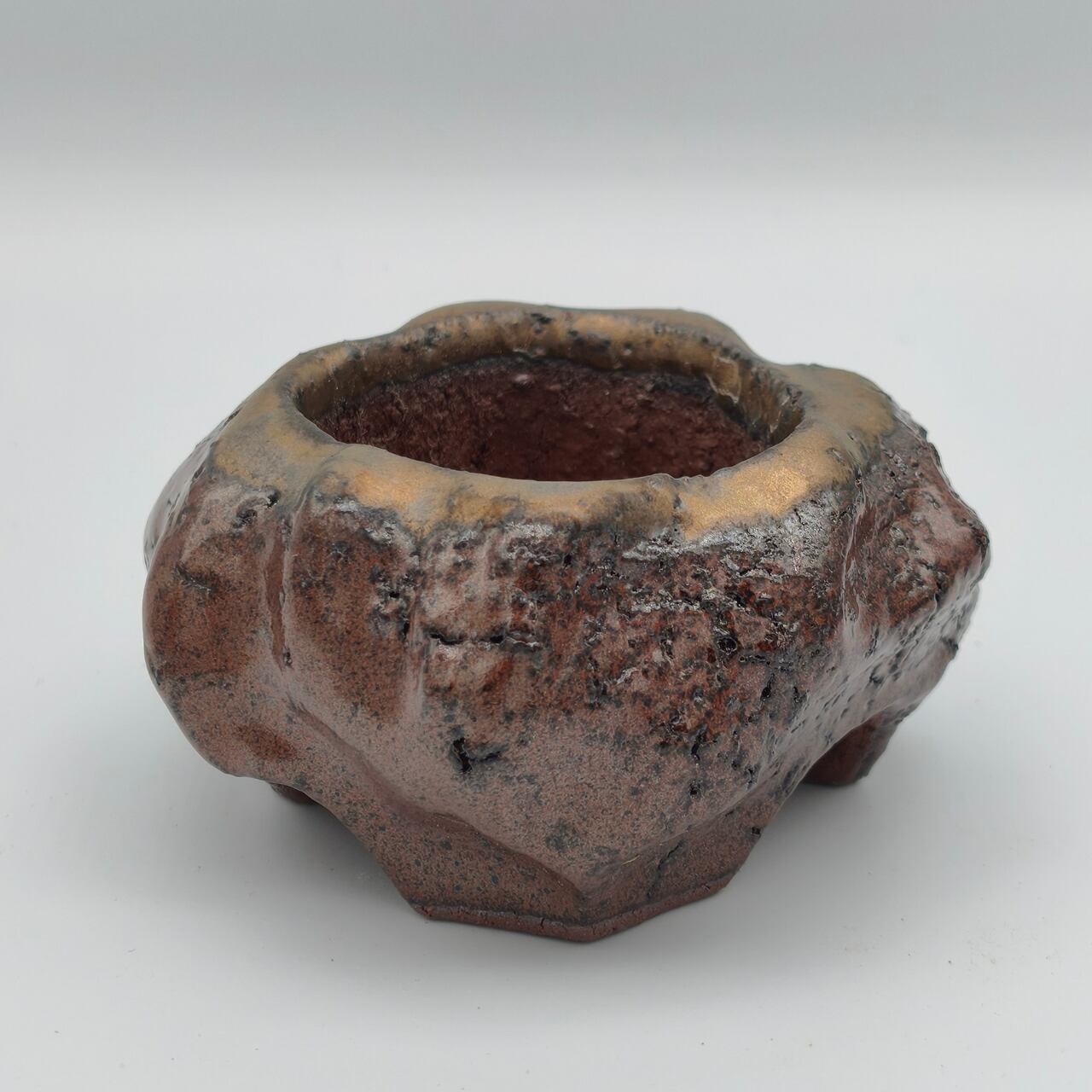 焼成の中で現れた濃淡と質感の重なりが、まるで光が触れた痕跡のように器の表面に残る一鉢。