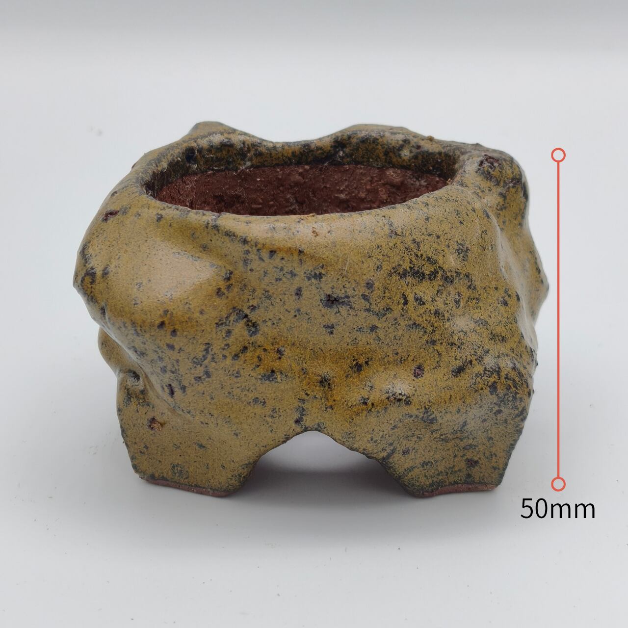 低く安定した構えの中に、内側へ向かう圧と外へ押し出す力が同居し、植え込まれたとき景の基盤として静かに支え続けます。